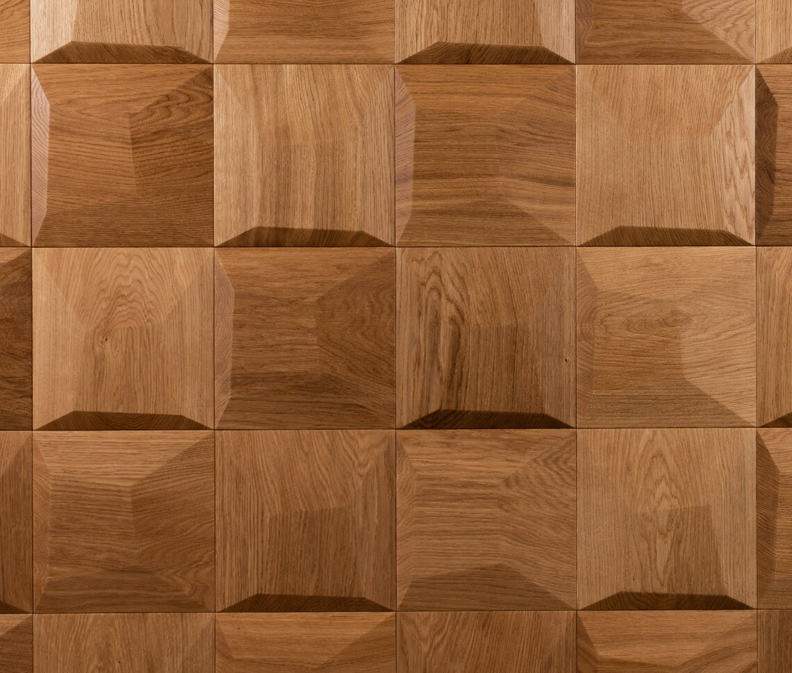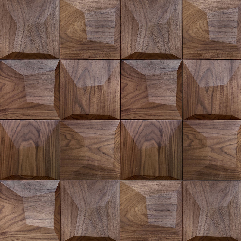 Модель PILLOW представляет собой деревянную декоративную 3D-панель в форме квадрата. Пространственный фронт образован пятью асимметричными плоскостями, преломленными под разными углами. В целом создается неправильное, авангардное геометрическое тело, напоминающее асимметричную пирамиду с усеченным конусом. Название модели навеяно визуальным эффектом так называемой «мягкой подушки», которая получается при креплении украшения на стене. Панели PILLOW идеально подходят для современных интерьеров. Панно PILLOW делают пространство динамичным и подчеркивают независимость и индивидуальность. Необычный рисунок привлекает внимание и бросается в глаза, повышает престиж интерьера и создает широкие возможности для дизайна (например, клетчатая текстура древесины). Изящество дизайна можно нарушить, приглушить или разнообразить, используя, например, плоский аналог в виде панели SQUARE из коллекции FLAT.